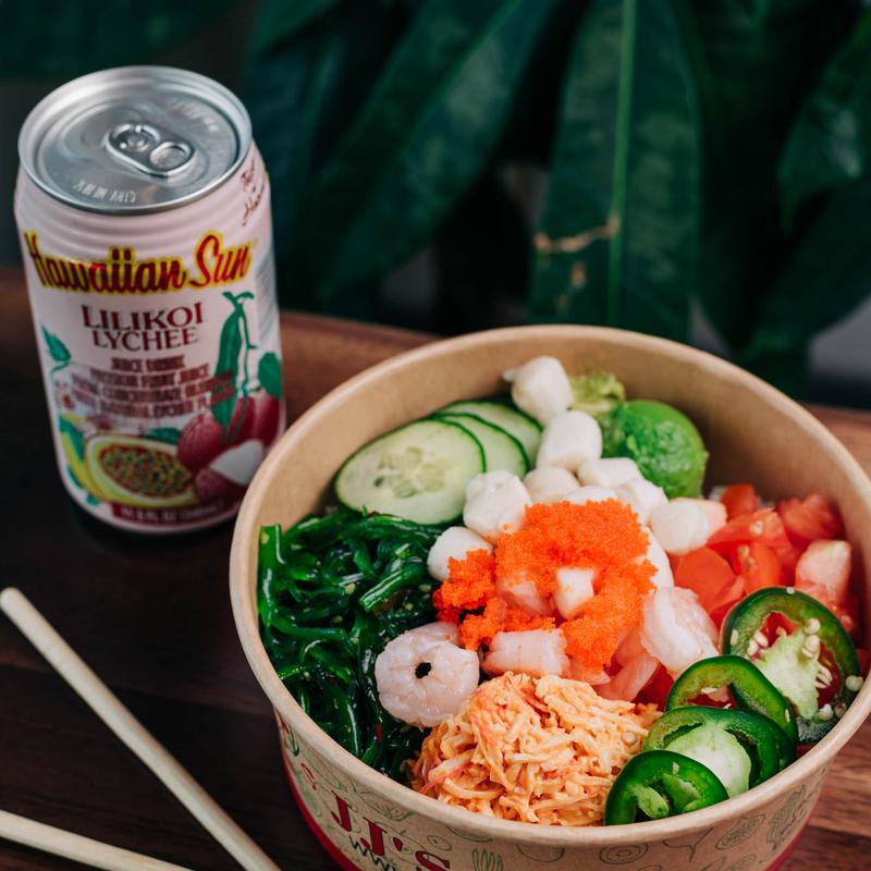 Poke is a classic Hawaiian dish with a name that means, “Chunk” The name comes from the use of marinated raw fish chunks or other proteins served on a base of rice, salad, or both. The dish also includes various toppings that you can personalize to make it your own! With the versatility of countless ingredients, this delicious dish can be eaten as a snack, appetizer, or entrée.